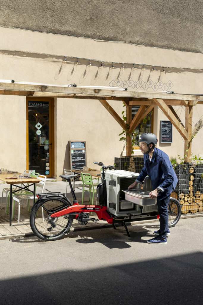 Pour faciliter les déplacements, même à pleine charge, le Cargo Verso est équipé d’origine d’un moteur électrique Yamaha particulièrement performant, développant une puissance de 250 Watts nominal. La batterie de 500 Wh est amovible et peut-être rechargée complètement en 4 heures sur une prise de courant standard. En fonction de l’utilisation, l’autonomie peut aller jusqu’à 100 kilomètres sur une seule charge. Le Cargo Verso est très facile à prendre en main avec une maniabilité remarquable. Il offre le centre de gravité le plus bas de sa catégorie, avec une belle stabilité notamment à pleine charge. La potence et le tube de selle sont réglables très facilement pour accueillir des cyclistes dont la taille est comprise entre 1,55 et 1,95 mètre.