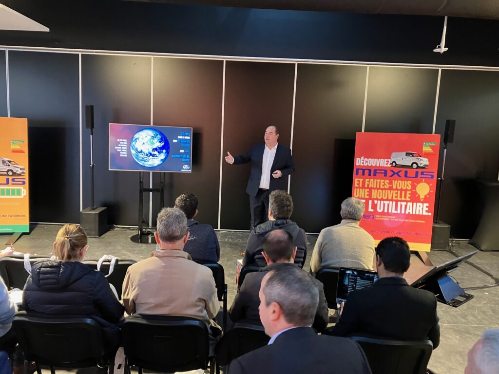 Avant de commencer, sachez que ces véhicules électriques, construits en Chine, sont produits par SAIC (Shanghai Automotive Industry Corporation) qui annonce 5,6 millions véhicules produits en 2022 dont ceux de la marque MG que l’on croise désormais à chaque coin de rue. Alors, parions que les utilitaires Maxus vont suivre le même chemin. L’ambition est là ! L’équipe est constituée de cadres expérimentés issus de la distribution automobile dirigés par Antoine Maria. Avant de prendre le volant, quelques explications ont été données afin de planter le décors. Pour commencer, sachez qu’en Grande Bretagne, il se vend 10 000 Maxus par an pour 6000 en Allemagne.